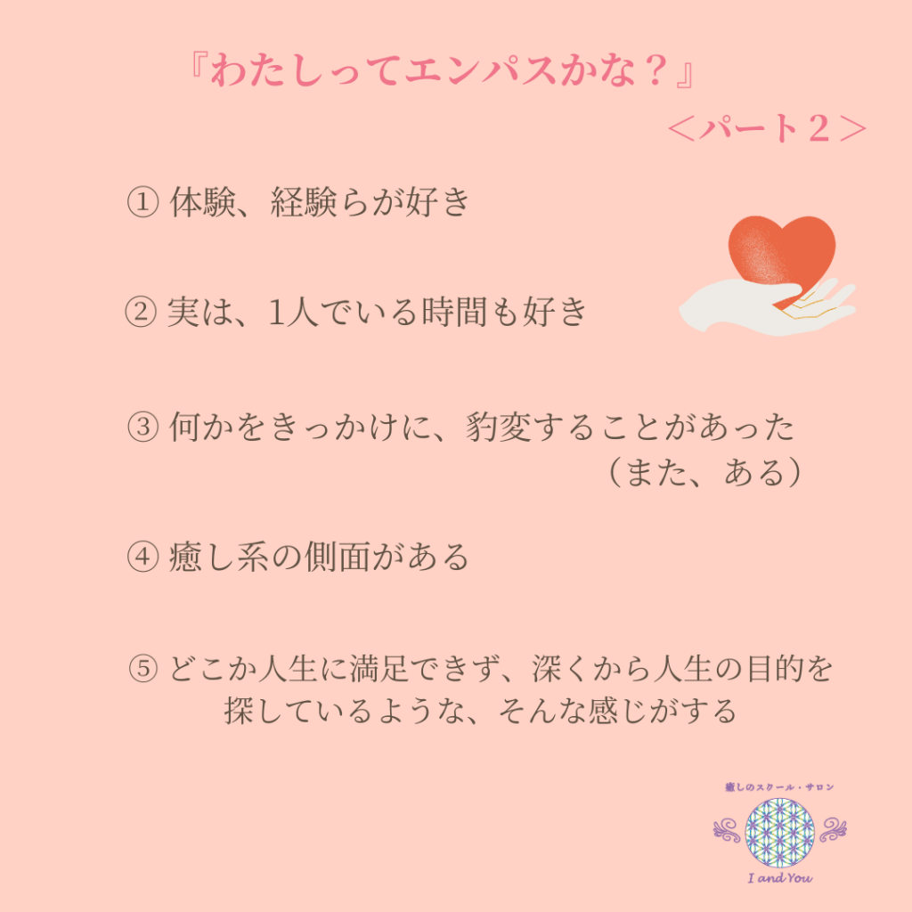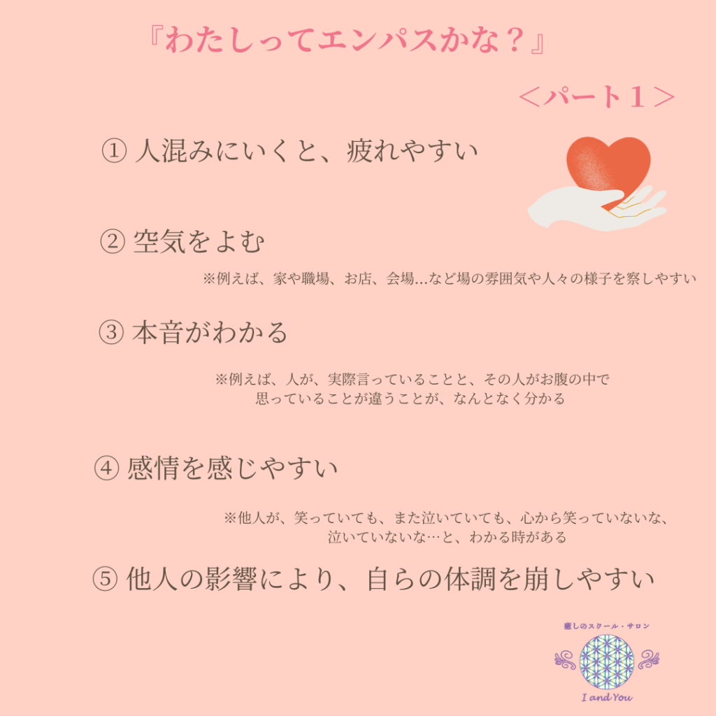 このシートで、5つ以上、思いあたる節がある場合、または「共感、エンパス…」と聞いて、なんだか気になる方は、エンパスの可能性大です。